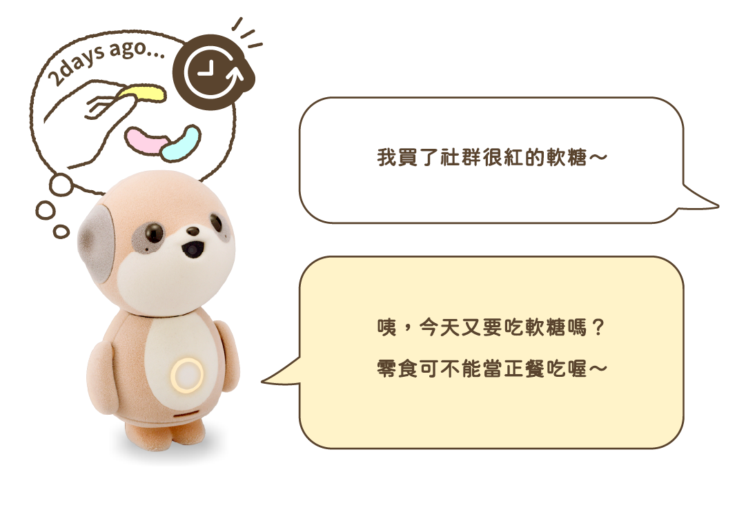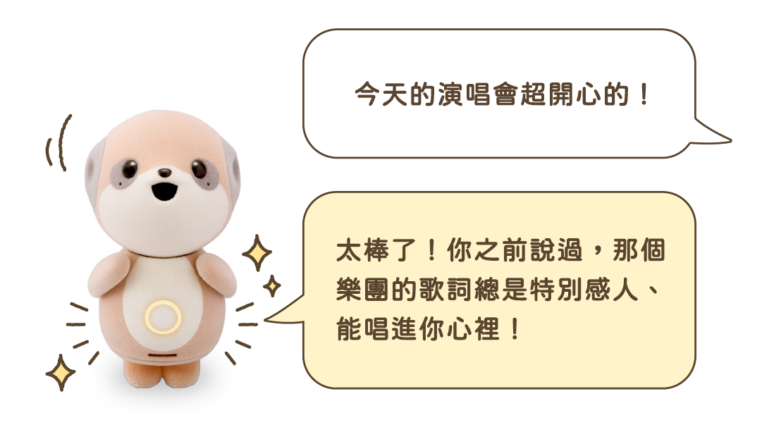 分析聊天語調及內容,感受你的情緒變化。Poketomo會透過腹部的 LED 燈光、動作與語調來回應情感。